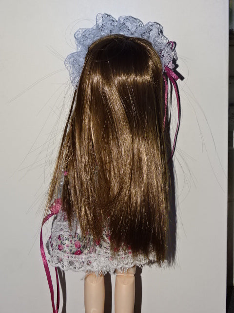 She has long brown brushable nylon hair and pretty Amber eyes.