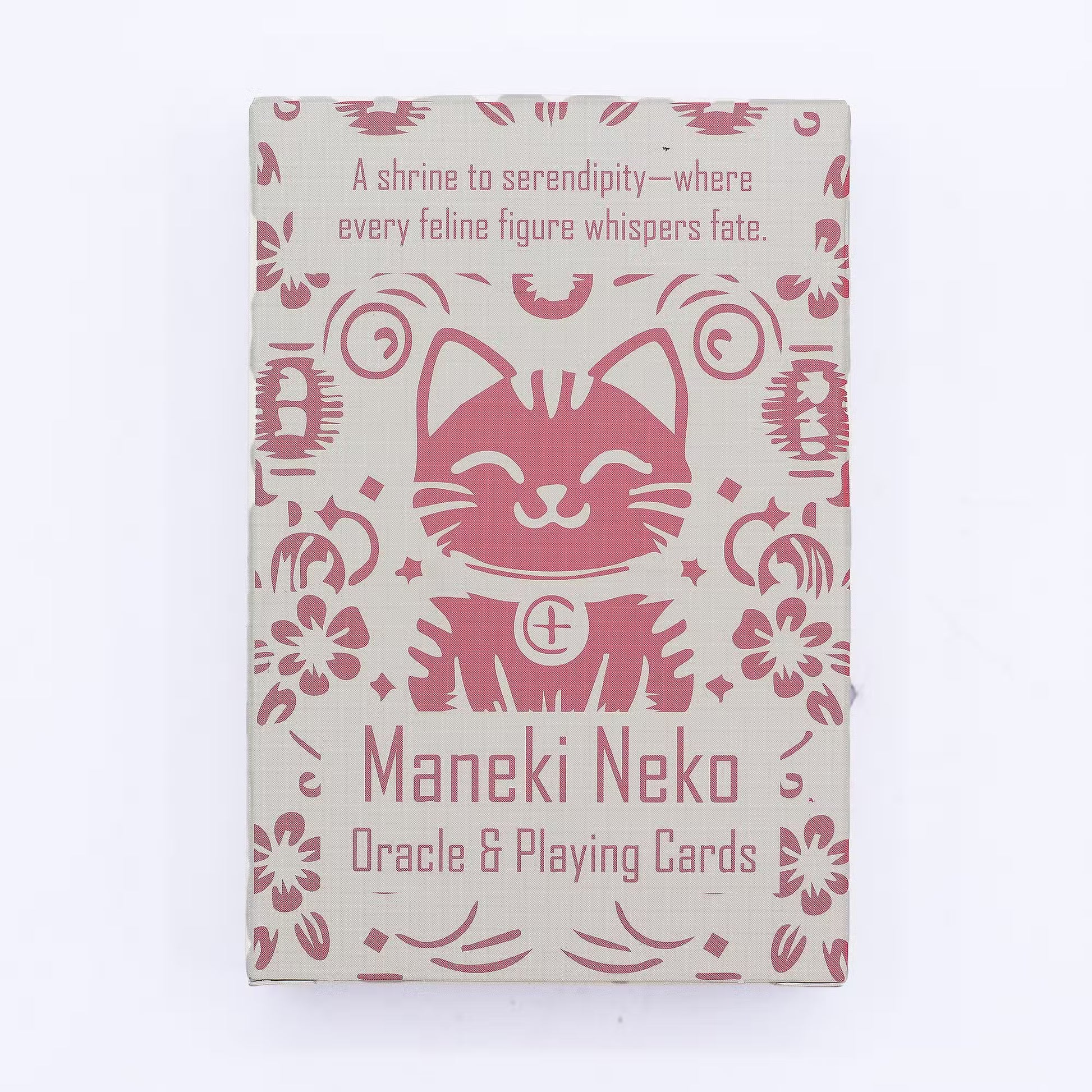 Step into the charm of Japanese folklore with this Maneki Neko-themed 54-card deck — where every lucky cat has a message to share. Both a game and a guide, this deck invites play, reflection, and fortune-telling in equal measure. Each card is illustrated with beckoning cats, torii gates, and soft pastel tones, creating a playful yet spiritual feel that fits any mood or moment.