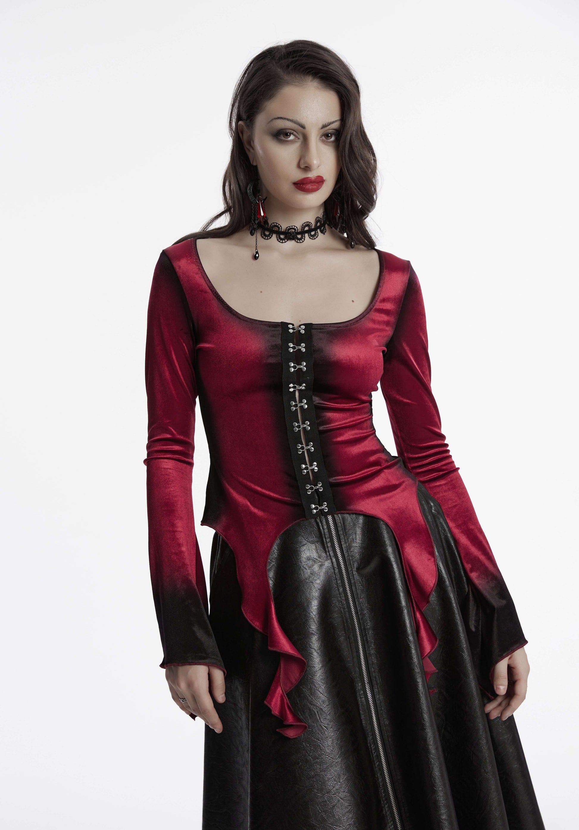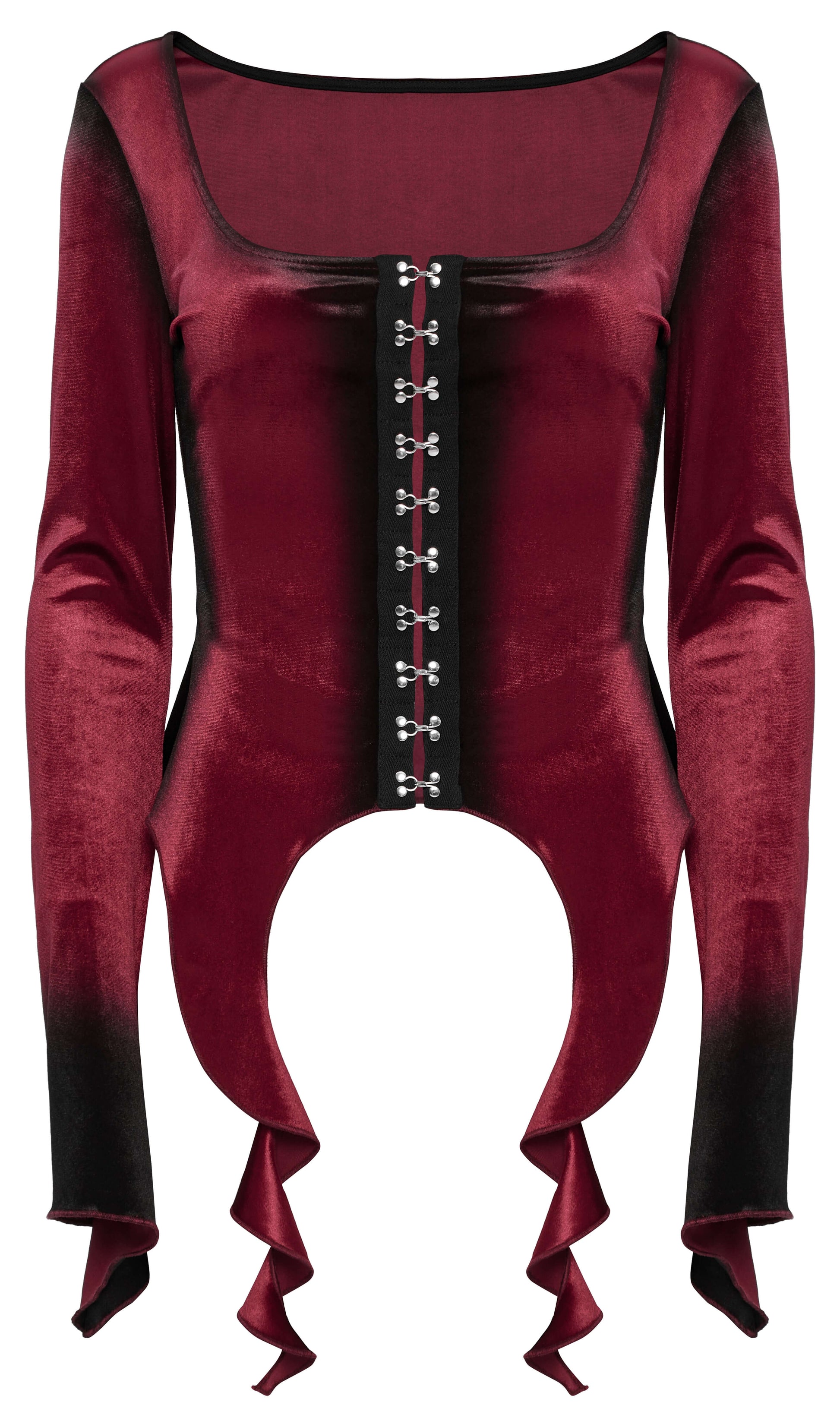 Punk Rave Leticia Burgundy Gradient Velvet Top with Feature Hooks and Eyes
