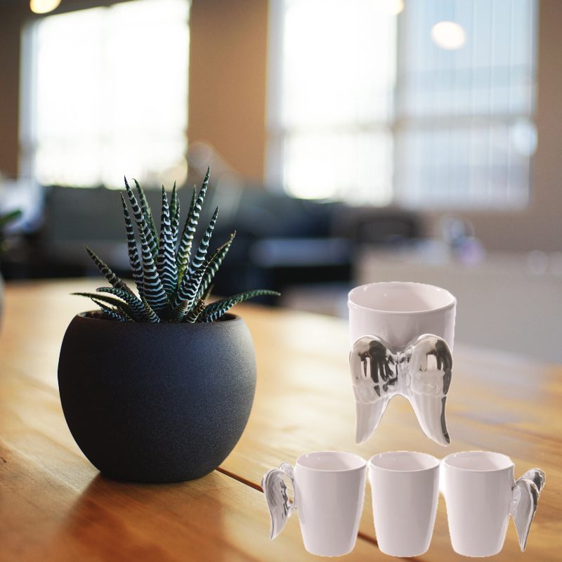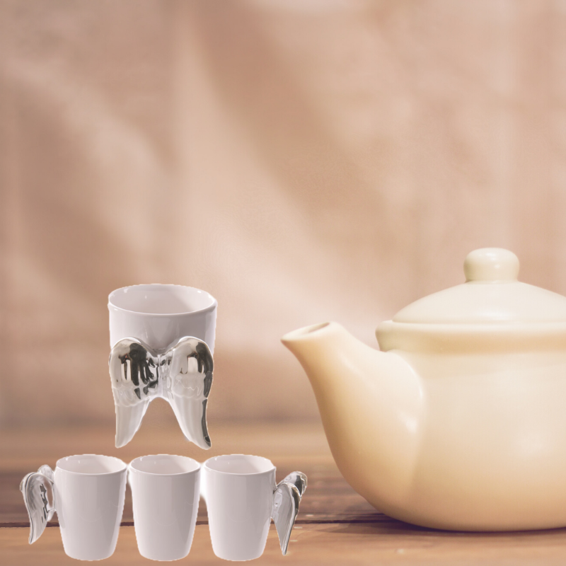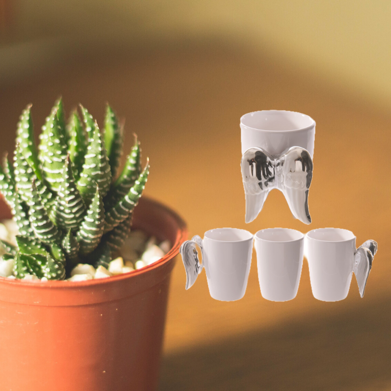 Shaped Handle Ceramic Mug - Silver Angel Wings